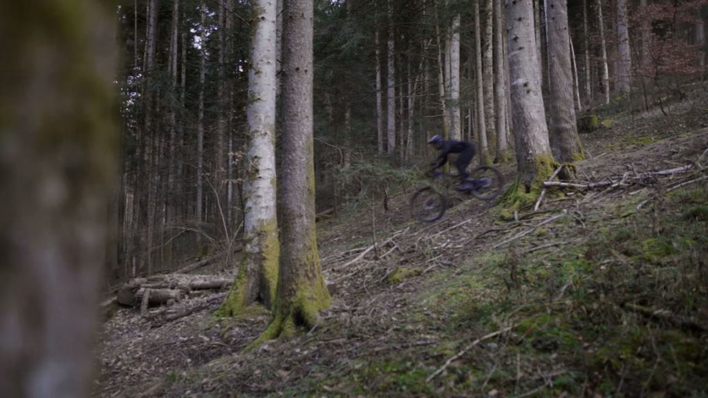 Plans larges d’establishment, plans fluides de suivi, plans plus dynamiques, sportifs, autour du VTTiste puis en approche et suivi du véhicule (faits au racer, donc) : nos deux drones ont permis de rythmer ces séquences, en complément des caméras au sol.