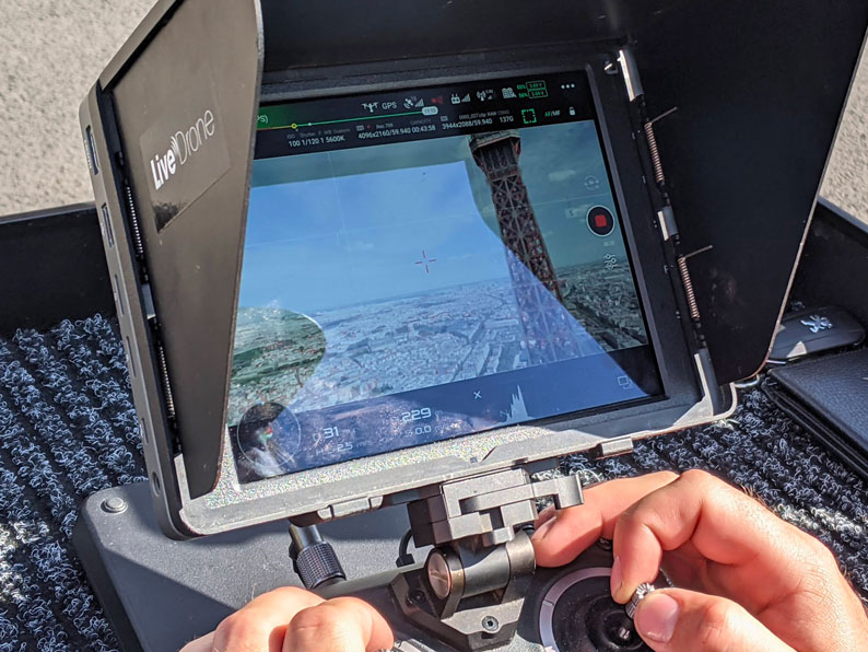 Généralement, en enregistrement comme en retransmission live, le drone DJI Inspire 2 avec sa nacelle-caméra DJI X7 représente de loin le meilleur compromis pour une qualité inégalée à moins de 8Kg.