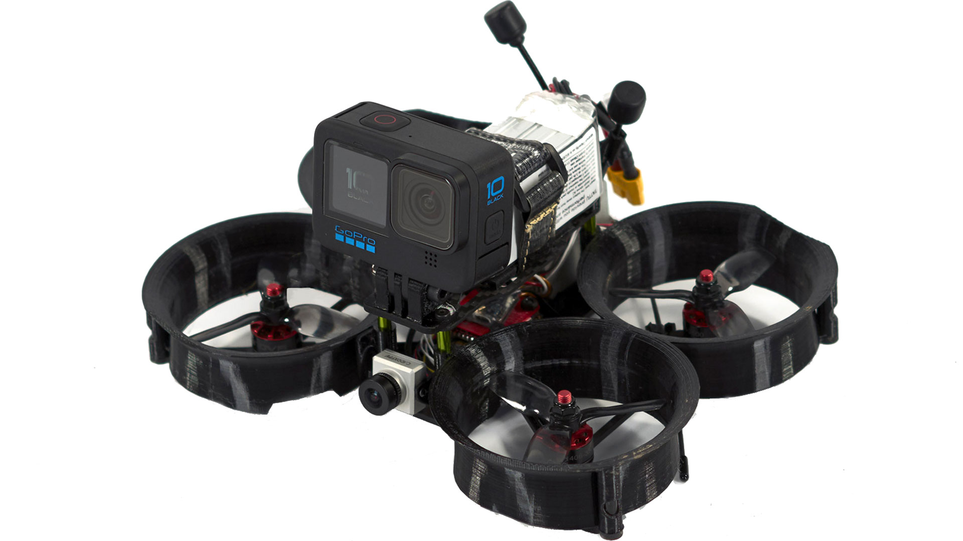 Compatible avec la plupart des gammes caméra embarquées : GoPro, l’Action 2 de DJ, SOM 4 k de chez BetaFPV…